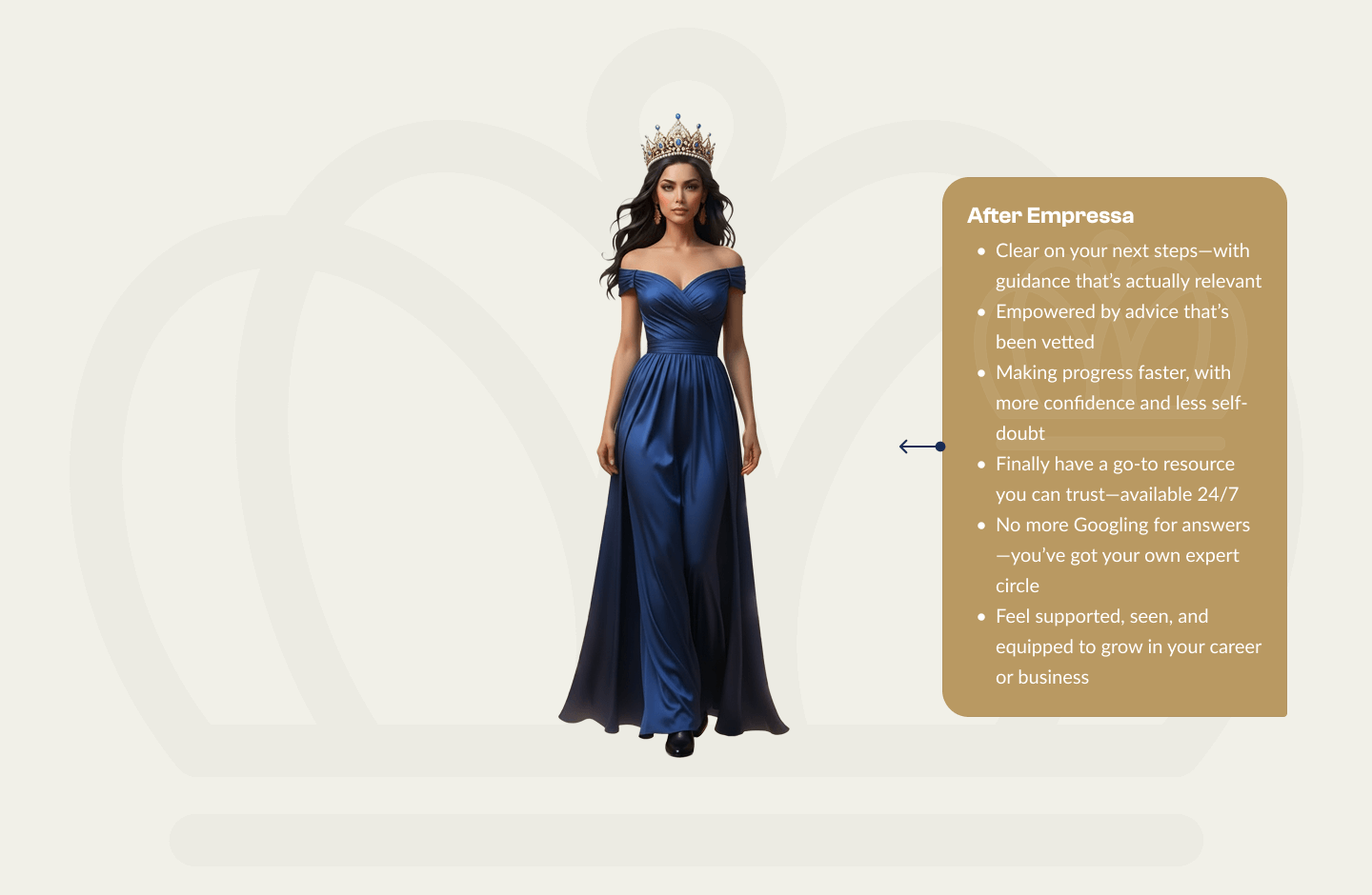 Ask anything — Empressa AI responds instantly with wisdom grounded in lived experience.